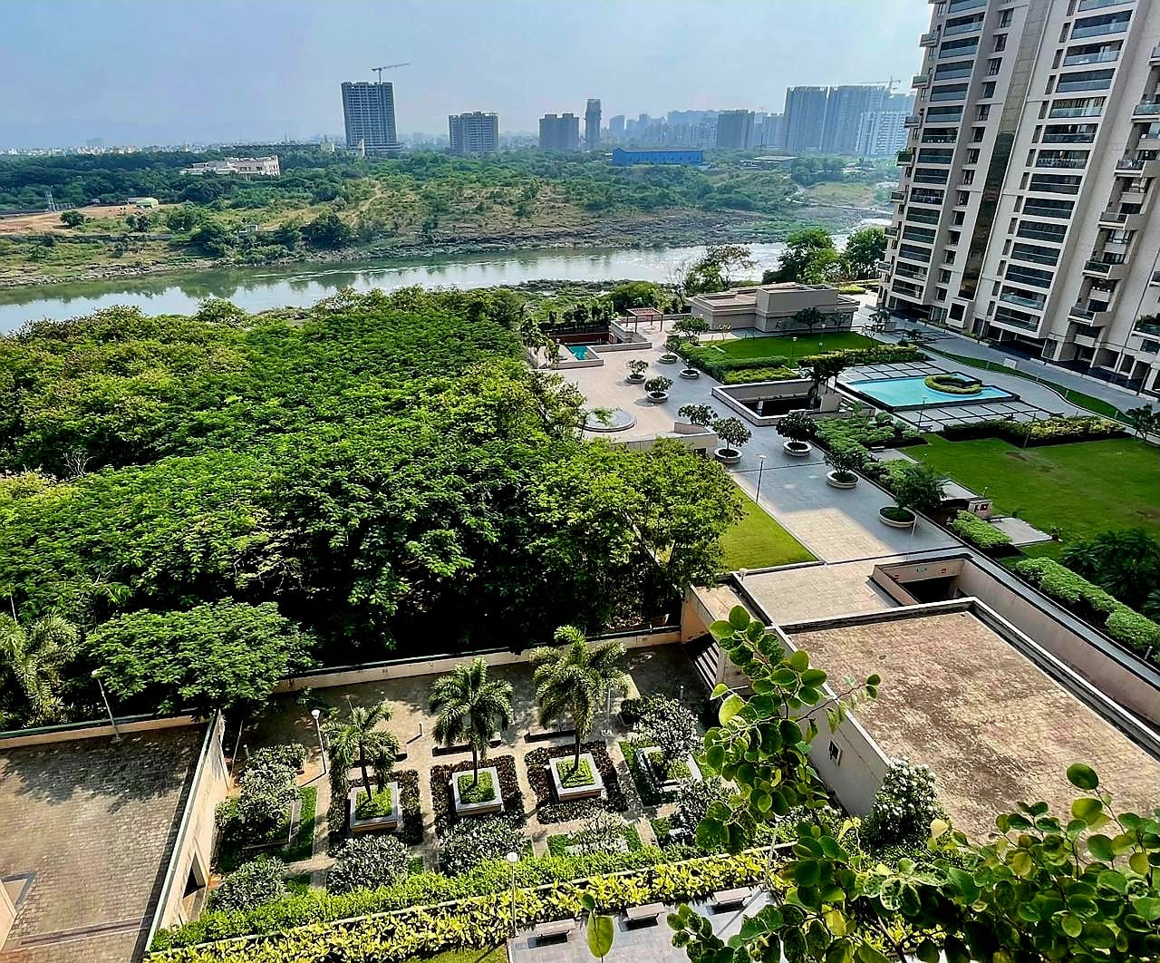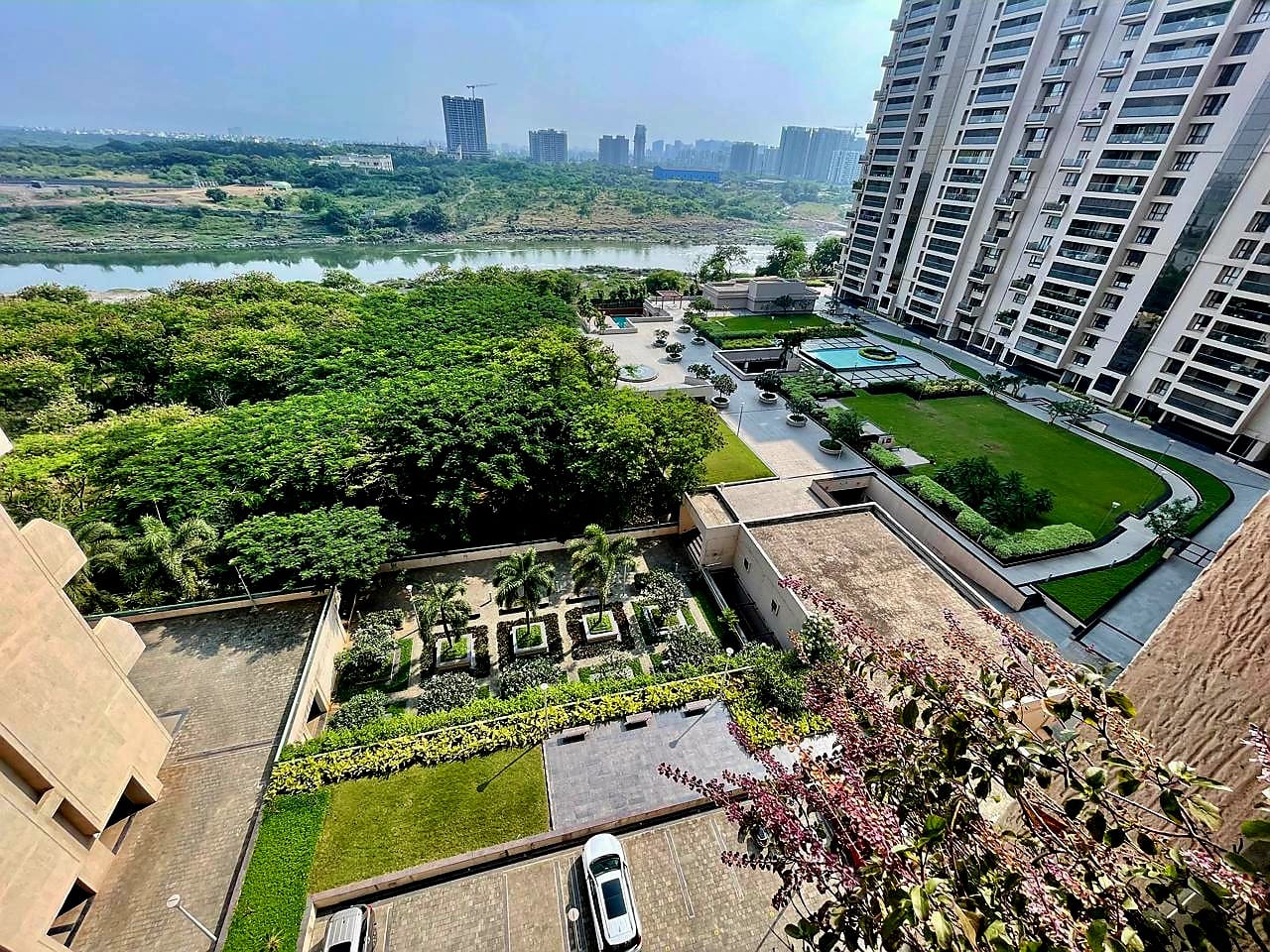 Spanning 2978 sq.ft, this spacious residence offers seamless air circulation, abundant natural light, and serene views of the society park, clubhouse, swimming pool, and river — creating a tranquil ambiance for everyday living. The property is Vastu compliant, ensuring harmony and positive energy throughout the home.